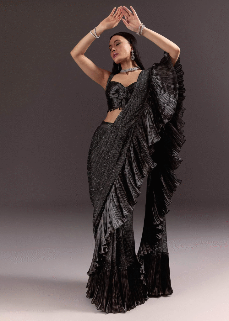 Black Ruffled Glam Saree βœ¨πŸ–€πŸŒ™