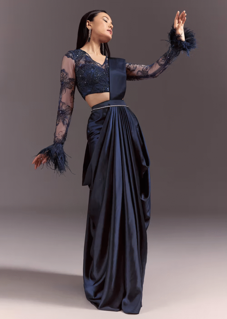 Midnight Navy Feather Saree πŸ’™βœ¨πŸŒŒ