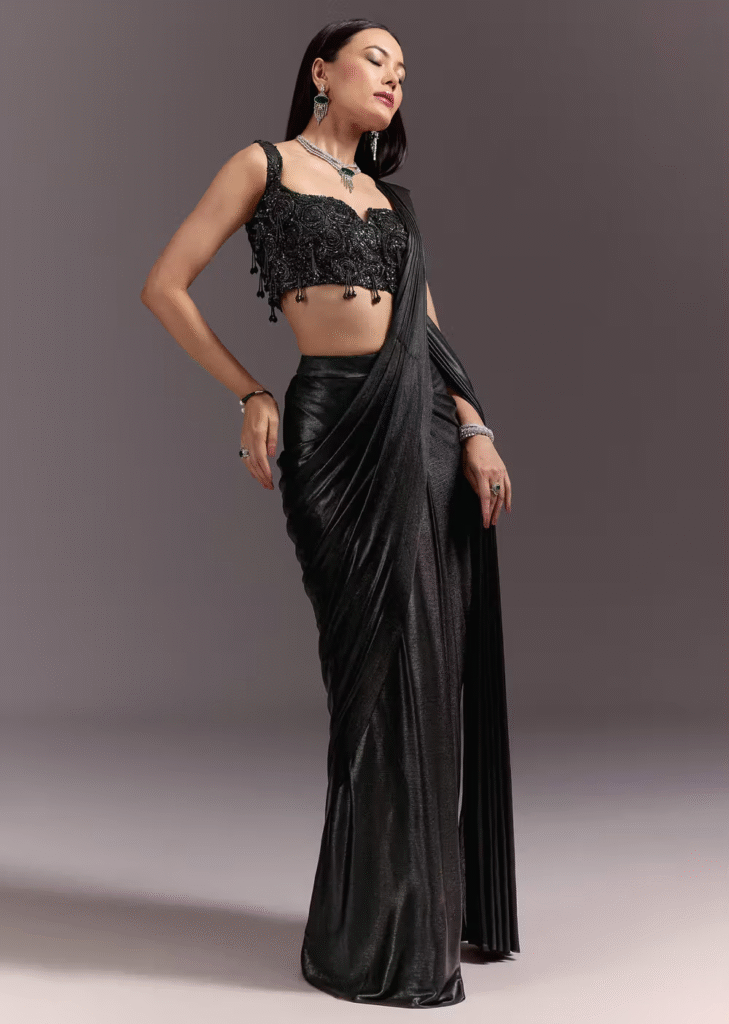 Metallic Noir Drape Saree βœ¨πŸ–€πŸ’Ž